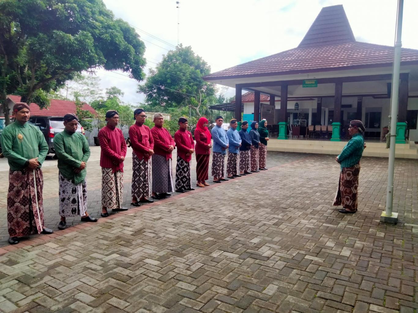 Pagi ini dilaksanakan Apel Kamis Pon yang diikuti oleh Pamong Terong dan juga Bamsukal Kalurahan Terong dengan memakai pakaian jawa. Dalam apel kali ini Lurah Terong Sugiyono,S.E menyampaikan terkait dengan berbusana yang benar saat memakai pakaian jawa dan juga kita harus bangga sebagai warga Jogja untuk terus nguri-uri kebuadayaan jawa.