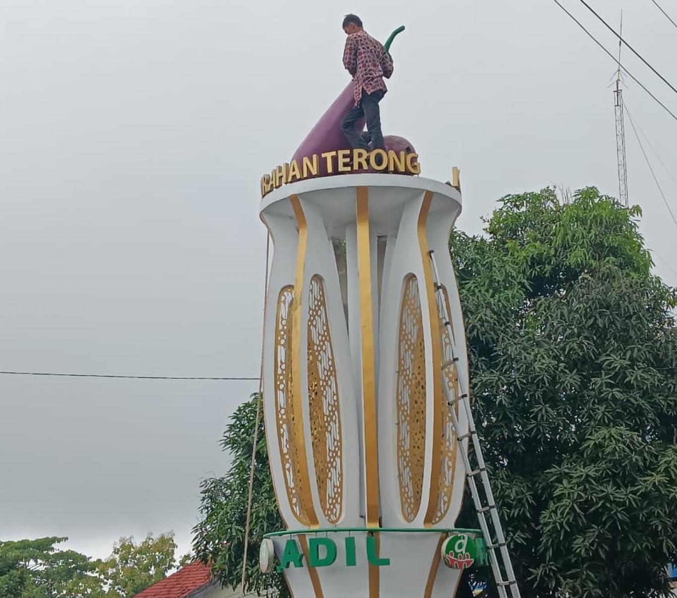 Cuaca Ekstrem Rusak Tugu Terong, Simbol Utama Kalurahan Terong Butuh Perbaikan Segera