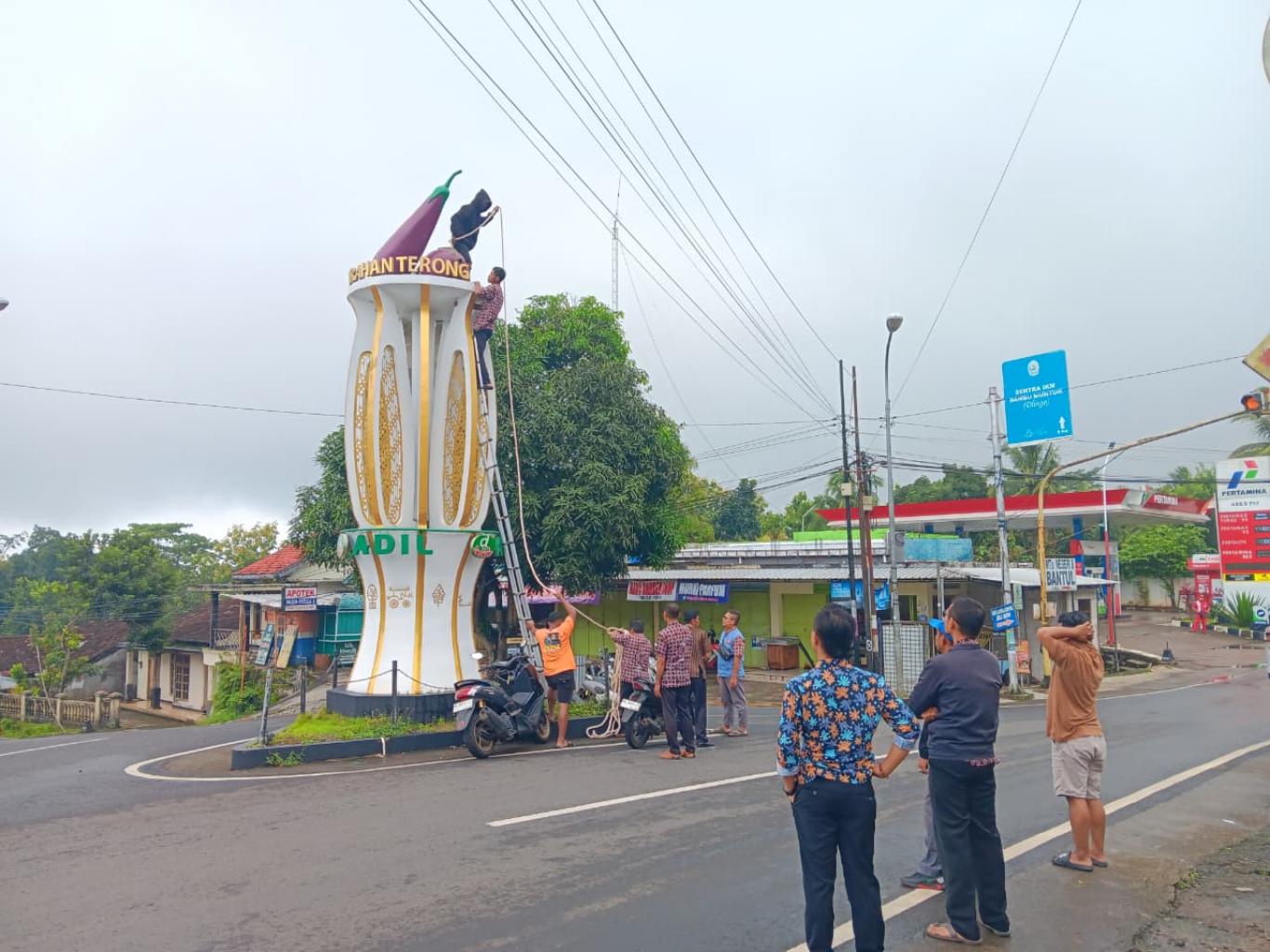 Saat ini, replika terong tersebut telah diamankan untuk selanjutnya dilakukan proses perbaikan. Meski wajah tugu sementara nampak berbeda, tindakan sigap para pamong ini mendapat apresiasi warga karena lebih mengutamakan keselamatan masyarakat tanpa melupakan upaya pemeliharaan identitas desa yang sangat berharga tersebut.